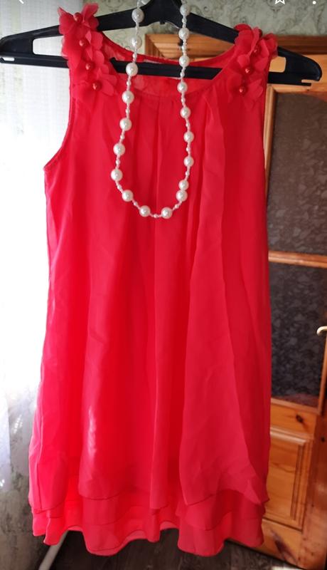 Яскраве плаття, фото трохи змінює колір, дуже гарне, с бусами, є подьюбник. Ріст 150, на 10-12 років.
