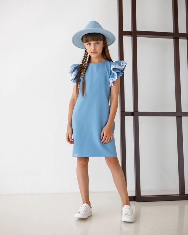 ❤️Чудове платтячко 🤍 Тканина костюмка 🤍Силуетний покрій, рукава рюші з круживом 🤍Виміри: дов/ширина ▫️140р.--73/33 ▫️146р.--75/34 ▫️152р.--76/35 ▫️158р.--77/37 ▫️164р..80/39 555грн
