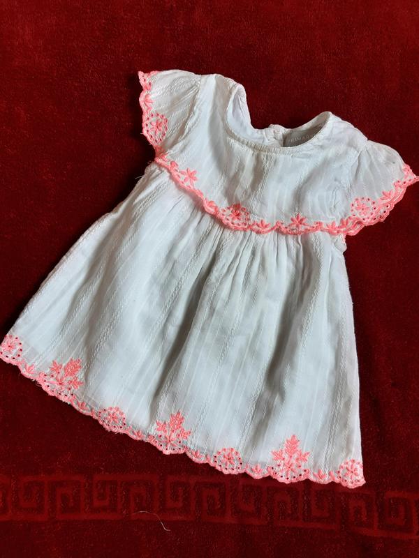 Белое платье Primark Англия марлевое хлопковое с розовой вышивкой на батистовой подкладке, отрезное под грудью. ЗАМЕРЫ длина от плеча до юбки/низа 11/37см, ПОГ 23см, плечи 21см, рукав крылышко 7см 59