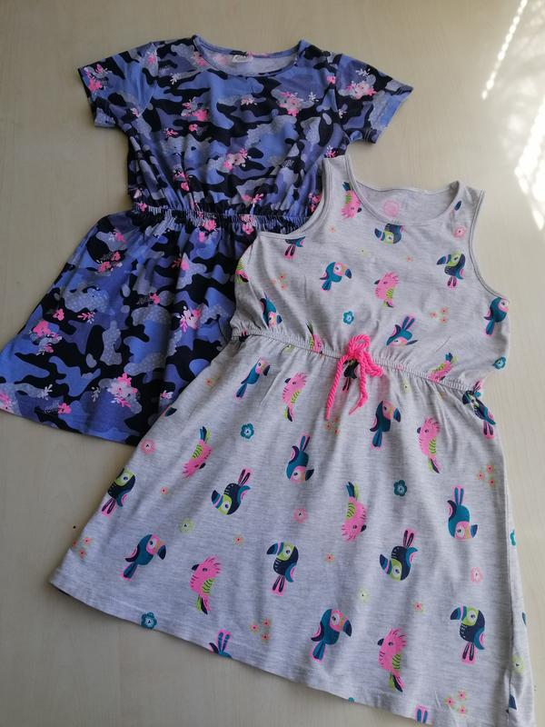 Одним лотом трикотажні платтячка Cool club р.104. В дуже хорошому стані. Ціна за два 165грн. З папугами довжина 56,ширина під руками 30,в талії 28(резинка). Синє довжина 55,ширина під руками 33,в талії 23,5(резинка).