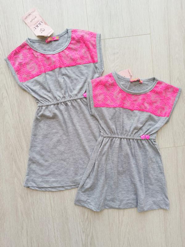 Легеньке платтячко , трикотаж ( 100 % бавовна) Туреччина в талії вшита резинка, добре тягнеться , прикрашена пришитими серденьками колір: сірий+рожевий розмір: 2,4 роки ціна 149 грн Заміри: 2: довжина - 46 см 4: довжина - 50 см