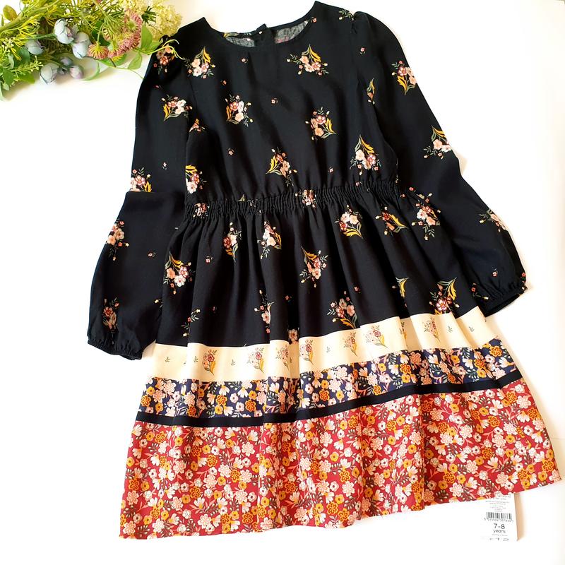 Красива легка сукня в квітковий принт,на спинці застібається на 3 гудзика, по бірці 7-8 років. Довжина 68,5, ПОГ 33, рукав від плеча 47
