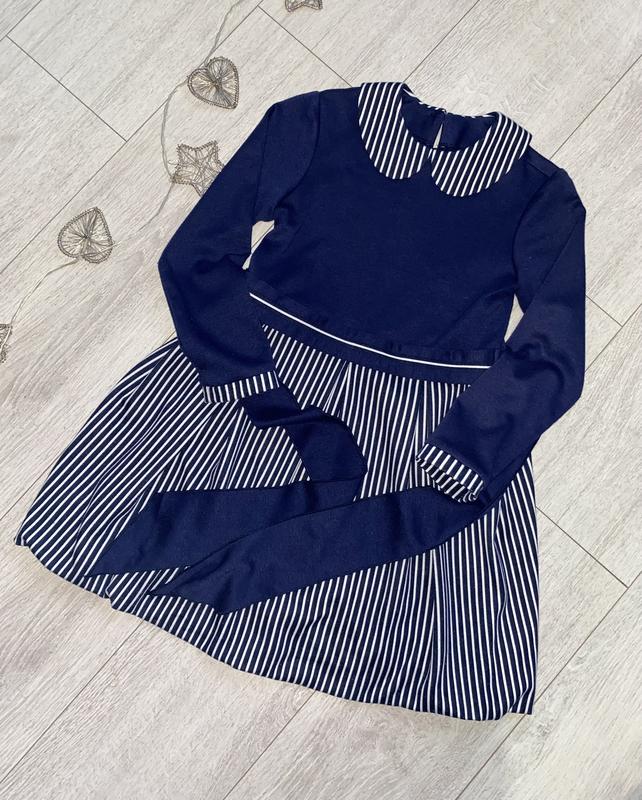 Темно синє плаття з довгим рукавом 8 років Довжина: 68,5 см. Пог: 31 см. Пояс: 32 см.
