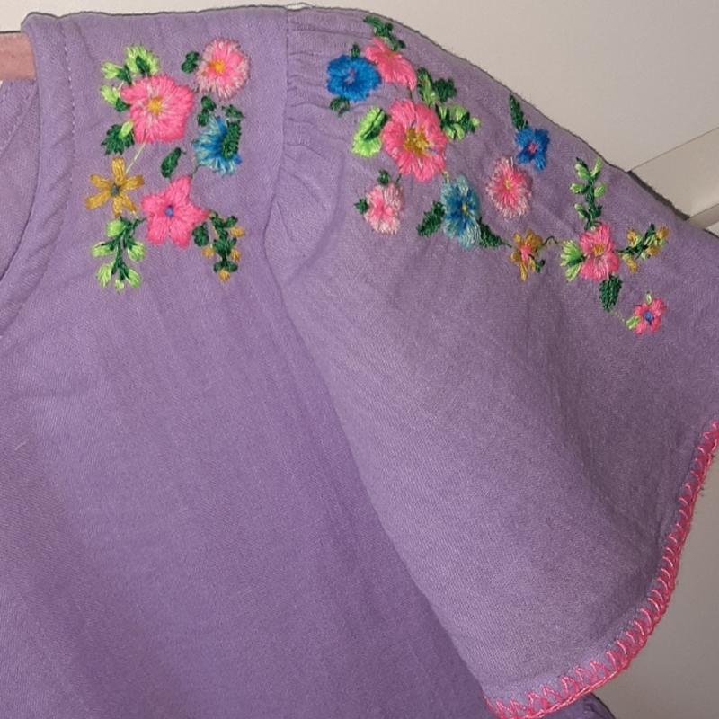 чудова сукня з яскравою вишивкою, натуральна тканина, дуже легеньке і гарненьке. з ньоансів - на спинці біля одного гудзичка був надиврався, зашили заклеїли. більше недоліків на має.