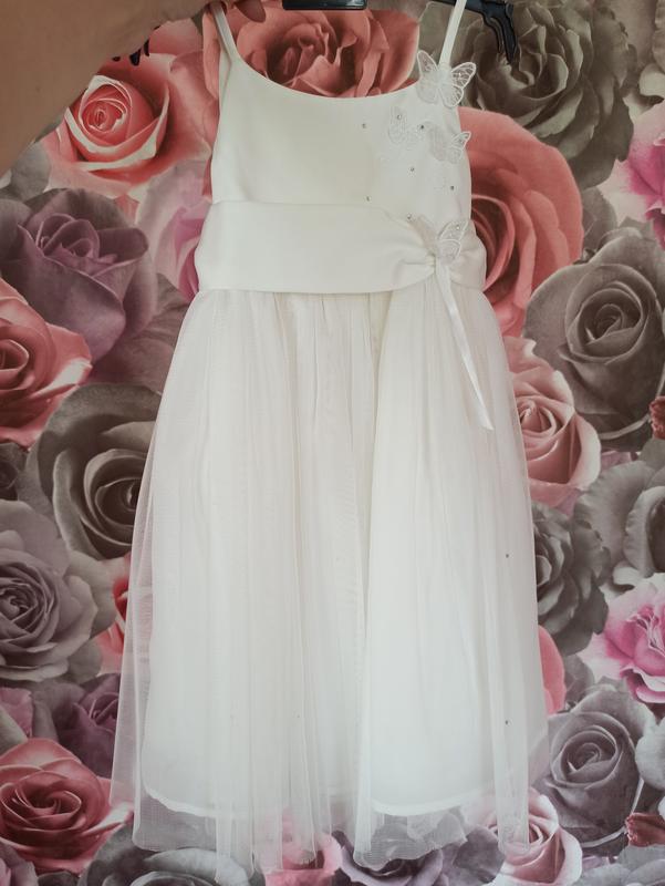 Нова 100%, я не пам'ятаю чи може навіть не міряна. Купували на фотосесію, але одягнули інше (також є на продаж). Довжина 66 см (до підлоги), ширина 29 см. Недолік!!! на другому фото. Я не знаю, що то таке, можливо від висіння у шафі чи після прасування (глажки) вода від відпарювання, але розвод жовтуватий, але його видно так, треба приглядатися. Треба попрати. Сукня без бірки (зняли, погладили, готували до фотосесії), але нова, купувалась в магазині, з біркою, не сток і секонд.