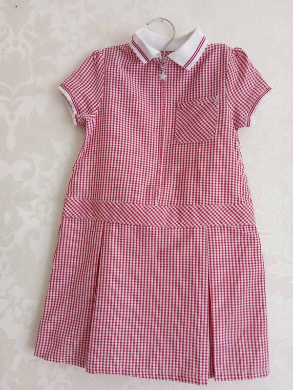 Дуже гарне літнє платтячко в мілку червоно-білу клітинку Під біле взуття- все, що потрібно. Сама тканини приємна на дотик. Розміри: Довжина по спині 56 см Ширина в плечах 23см ПОГ 29 см ПОТ 33 см ПОР 9 см.