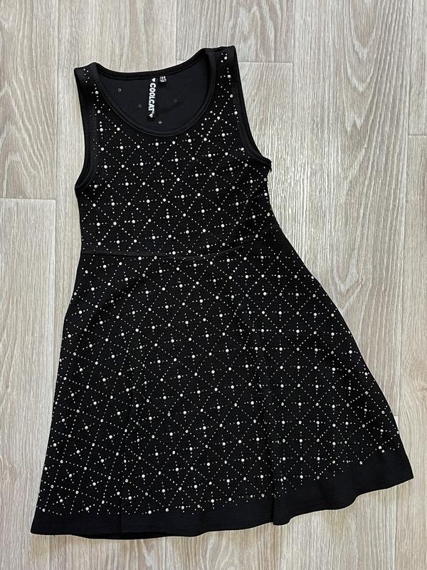 Черное платье украшенное стразами Состояние идеальное 🏷️CoolCat 9-10 лет/134-140 Длина 69(28). ПОГ 29+