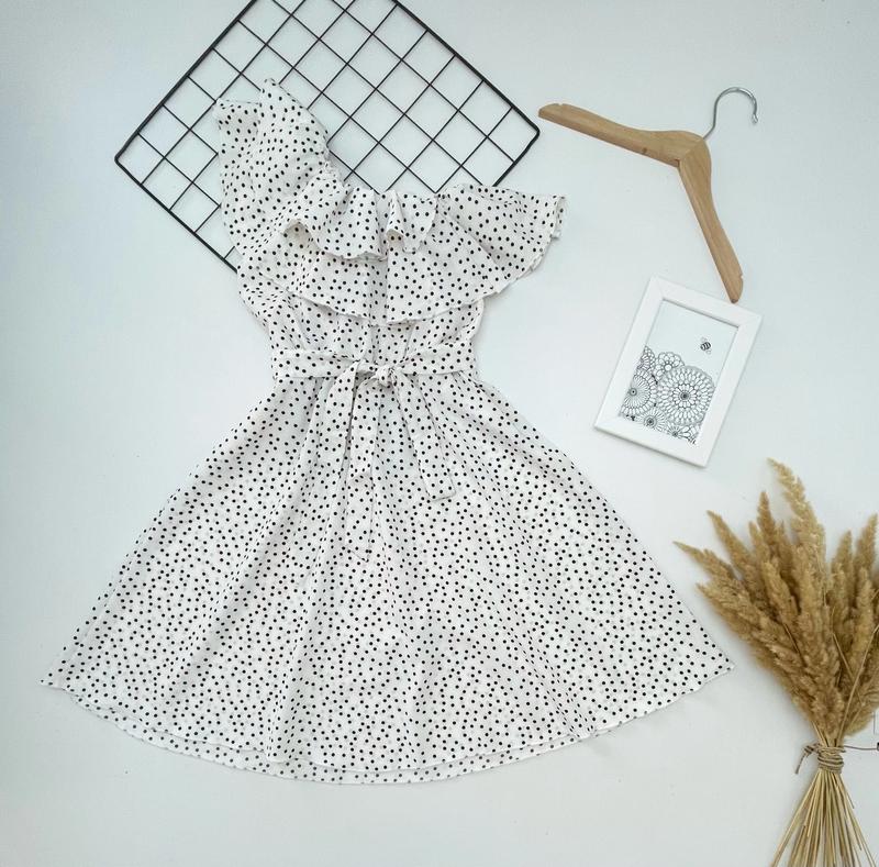 Повітряна літня сукня для принцеси, тканина супер софт, одне плече спущене, в талії є резиночка, поясок у комплекті. Рекомендую зріст/довжина/пог похибка+-2см 134/73/33-2шт