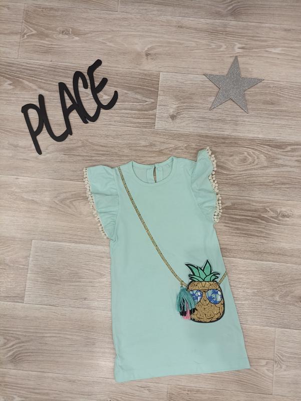 Сукня на дівчинку м'яка з принтом стильна, в гарному стані, принт ананас кишеня на липучці, на 4 роки приємне на дотик