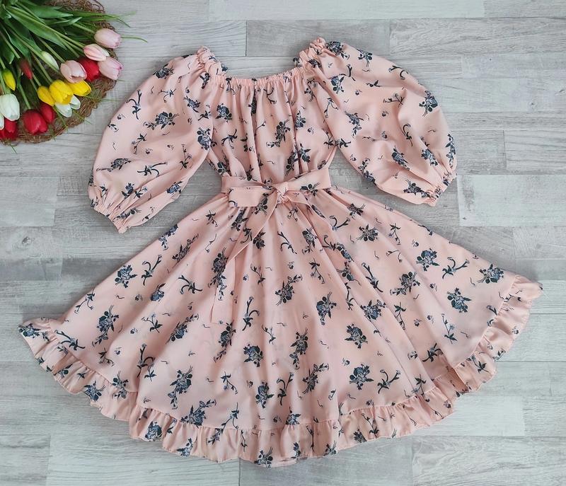 Таня В наявності 🧡 Модна сукня тканина софт в талії на резинці,пояс входить в комплект РЕКОМЕНДУЮ! заміри:довжина/рукав/пог 146-152-80/42/43 164-170-91/43/47 +-2см