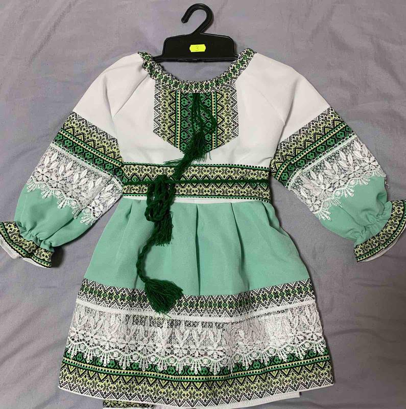 Плаття вишите, якість дуже чудова, тканина габардин. Ціна: 1-8р - 840 грн 9р - 860 грн 10-11р - 930грн Розмір/об‘єм груді/рукав від плеча/довжина/талія 1рік/33/33/51/30 2роки/34/34/54/30 3роки/35/35/57/31 4роки/36/36/61/32 5роки/37/37/66/33 6роки/38/38/69/34 7років/39/39/73/35 8років/40/40/76/36 9років/41/41/79/37 10-11років/43/43/83/39.