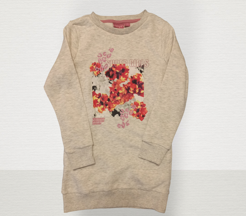 Платье - туника для девочки, флис, по бокам есть карманы Состав: 80% хлопок, 19% полиэстер, 1% вискоза Полуобхват груди- 36 см Длина рукава - 45 см Длина изделия- 59 см р.128 см
