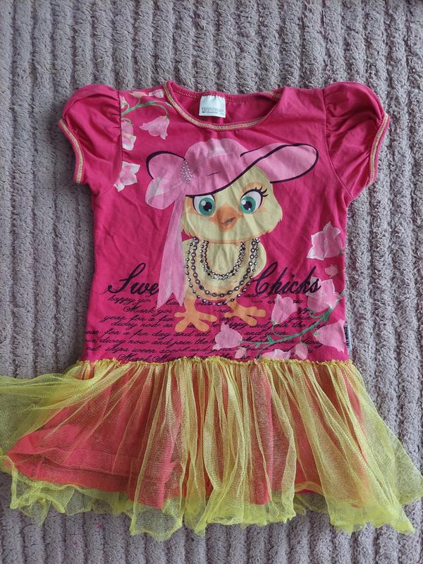 платтячко з качечкоюна 104см, стан дуууже добрий. ззаду трішки відірвався гепюрова спідничка (на останньому фото показала)