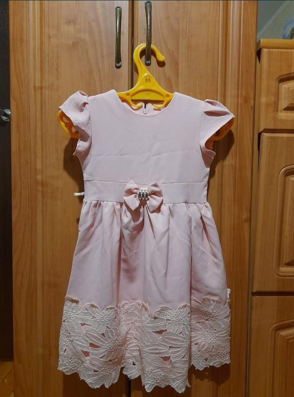 Плаття ніжно рожевого кольору сподобається вашій донечці. З бантиком на поясі та прикрашений гарним квітковим візерунком низ плаття. В гарному стані. В комплекті до платтячка - болеро. Ціна за комплект Оплата на картку