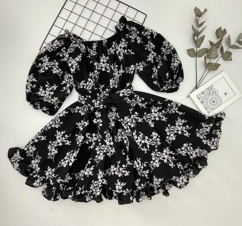 Весняна сукня для красунь в цветочный принт по талии под резиночку и поясок рукавчик фонариком рукавчик и верх также под резинку Тканина супер софт РЕКОМЕНДУЮ! рост/длина/пог/рукав полная длина похибка+-2см 140-146/74/42/38-2шт