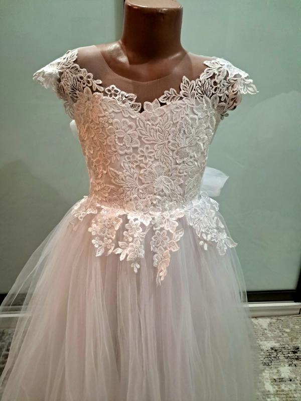 мереживна ніжна сукня, ПОГ-31, ПОТ-29, довжина 104см, верх прошитий мереживом котонова підкладка, низ атласна спідничка, 3 шари фатіну