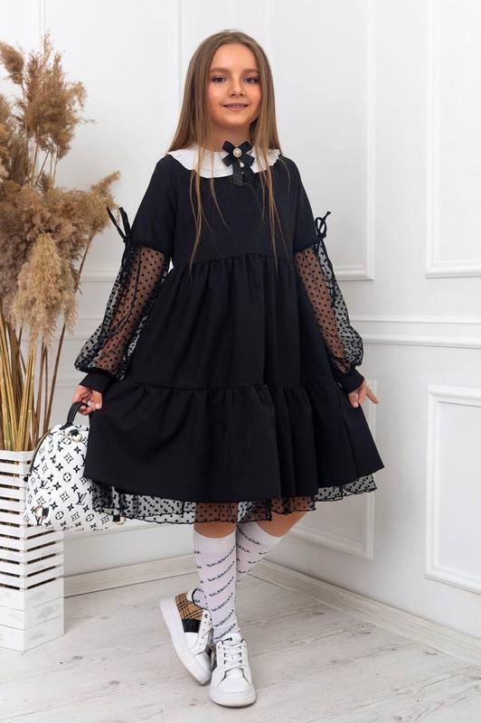 Сукня Хіт продажів!!!!❤️❤️❤️ мод№710 Ціна: 720 грн Розміри: 128, 134, 140, 146, 152. Тканина: креп костюмний Туреччина. Кольори: чорний та темно-синій. Фурнітура: брошка. Стильна шкільна сукня з білим мереживним комірцем виготовлена з костюмної тканини та сітки флок. Завдяки розкльошеному фасону відмінно сидить на худеньких дівчатках і на дівчатках з формами. син1523