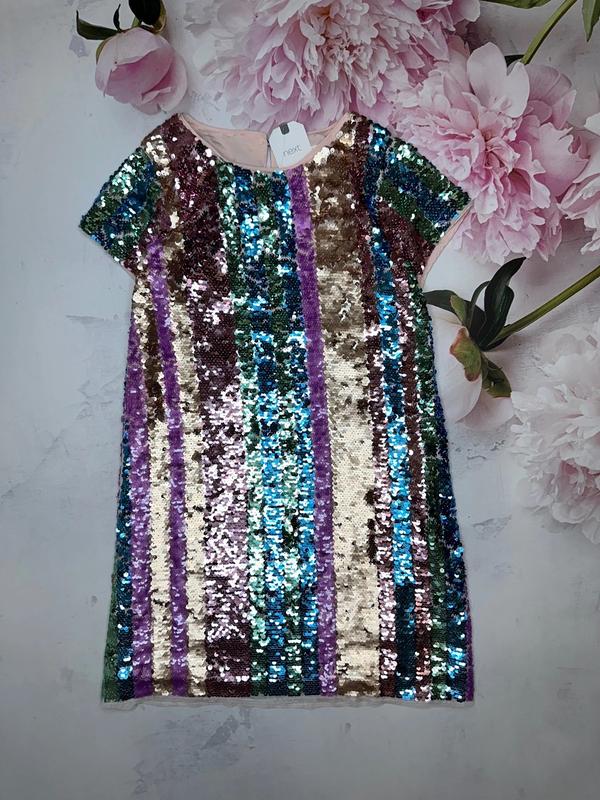 Нове плаття в паєтки Підкладка поліестер Застібається на ґудзик 🏷️Next 10 років/140 Довжина 73. ПОГ 39