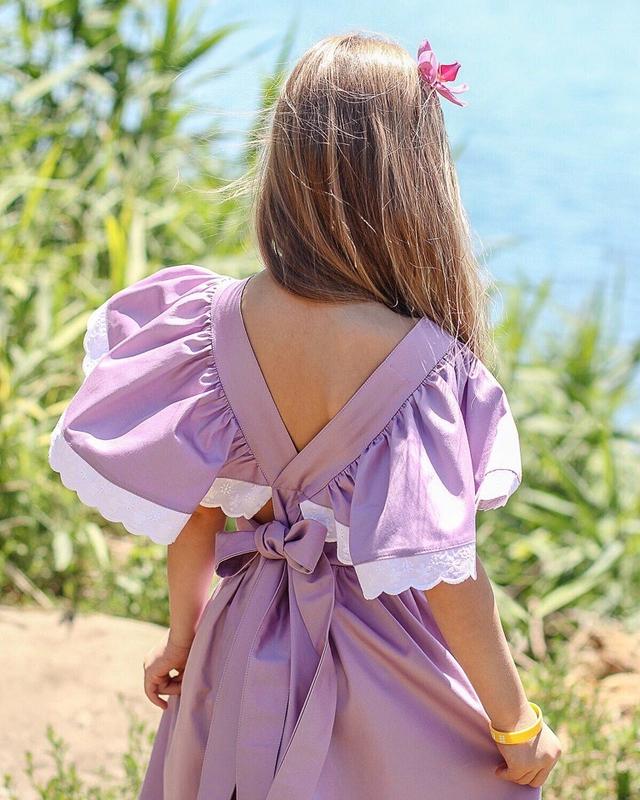Детское платье, выполенное из хлопковой ткани, дополнено кружевом, нежнее крылышко,бант на спинке, ткань переливается