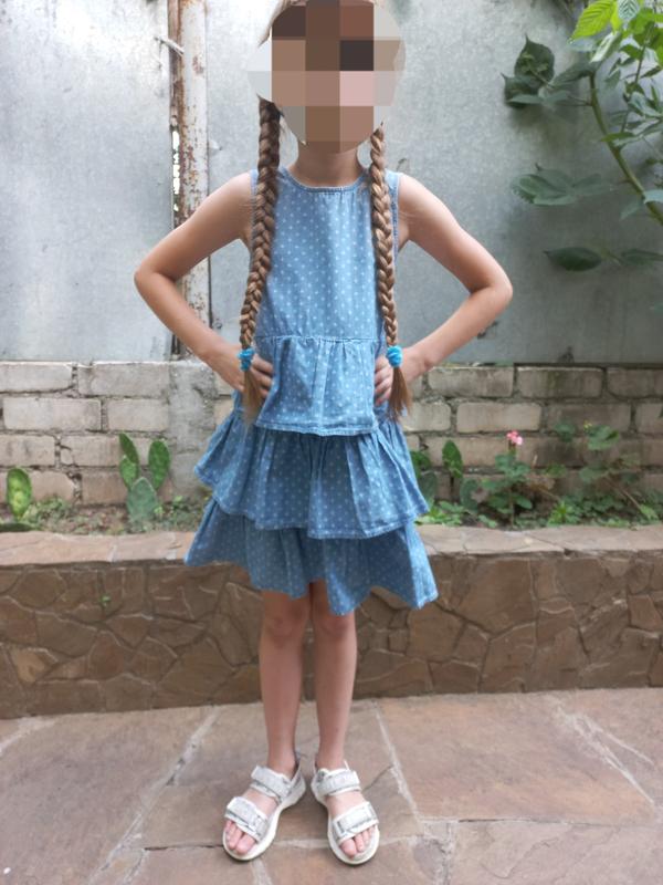 сукня нс 7-9 років.Одягнена 132см.Довж.70,НОГ 34,НОТ 33 ,НОБ 37.Іднальний стан.Бавовнв 100%Тоненька тканига,нагадує джинс.