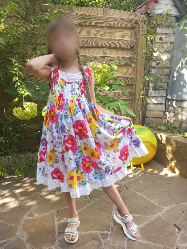 дуже яскрава і красива сукня на 7'-10 років.Одягнена 132 см. Якісна.Довж.78 НОГ 42.