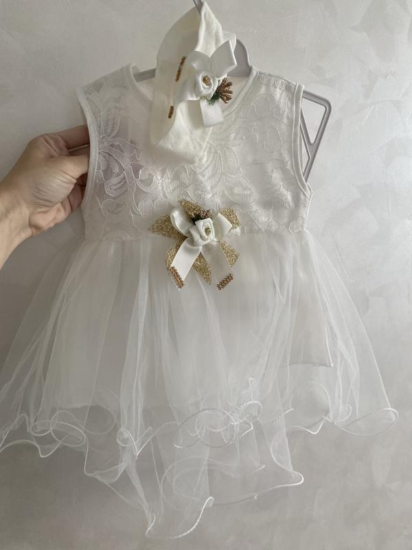 Дуже гарна дитяча сукня. Додатково є ще колготки та бодік(входить в ціну). Заміри скину, запитуйте. Підійде для хрещення, або на будь яке свято та фотосесії. Розмір 0-3,3-6міс.