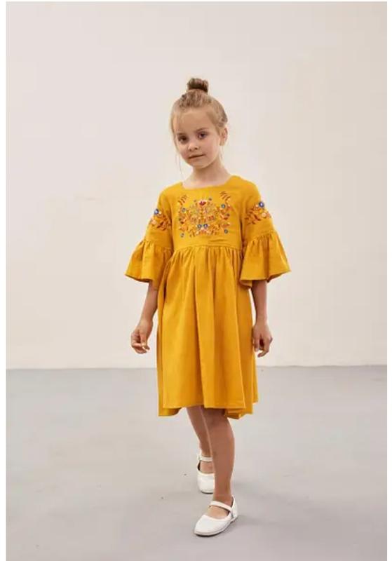 Розміри від 110 до 140 по зросту Тканина - льон / бавовна Склад тканини - 55% бавова, 45% льон Вишивка машинна, гладдю.