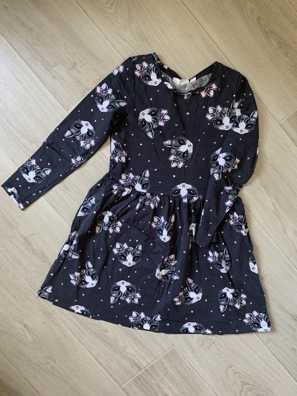 Дуже мила сукня з котиками, чудовий варіант для школи, садочка. Довжина 62, рукав 40, пог 30, тканина гарно тягнеться. Стан нового.