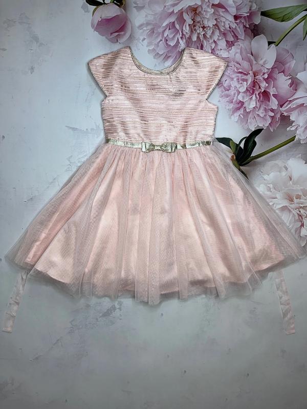 Пишне плаття рожевого кольору. Застібається ззаду на ґудзики та на талії зав'язується бантик. Стан ідеально 🏷️Jon's Michelle 7 років Довжина 70 (25). ПОГ 33.
