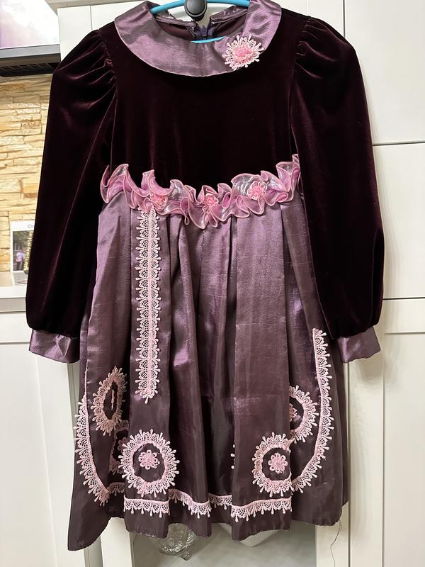 Платтячко на дівчинку 3-5років, дуже гарна тканина з перламутровим відтінком, верх оксамитовий,стан ідеальний, має підкладку з натуральної тканини, не парить.