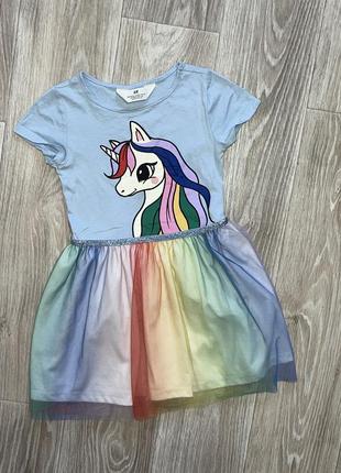 Плаття з Єдинорогом Верх як футболка, спідниця двошарова Стан ідеальний 🏷️H&M 4-6 лет/110-116 Довжина 59 (27). ПОГ 29