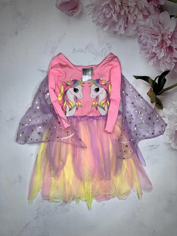 Платье-комбидресс с единорогами Состояние отличное 🏷️H&M 4-6 лет Длина 50/62(28). ПОГ 28. Рукав 31