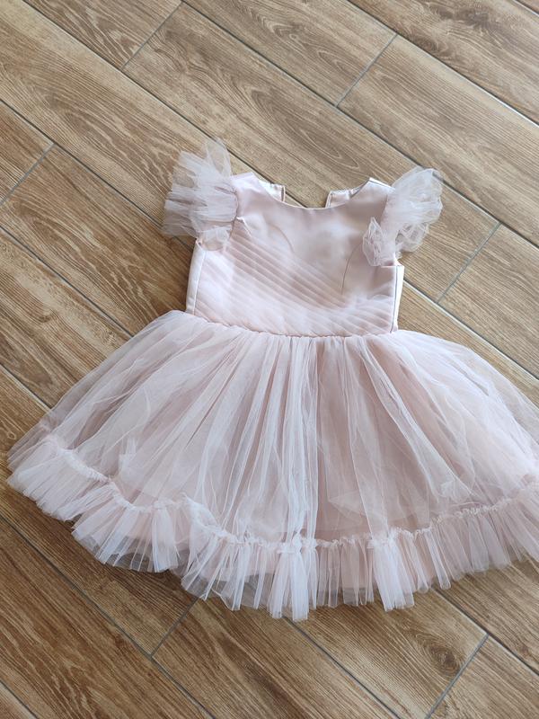 Сукня була пошита на свято під замовлення, вдягали 2 рази. На спідниці багато шарів фатину, досить пишна. Довжина 55 Талія 26,5