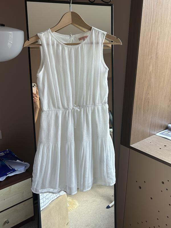 Ніжна біла сукня в дуже хорошому стані. Трохи маломірить від заявленого 146-го розміру, оптимально на 135-142 см