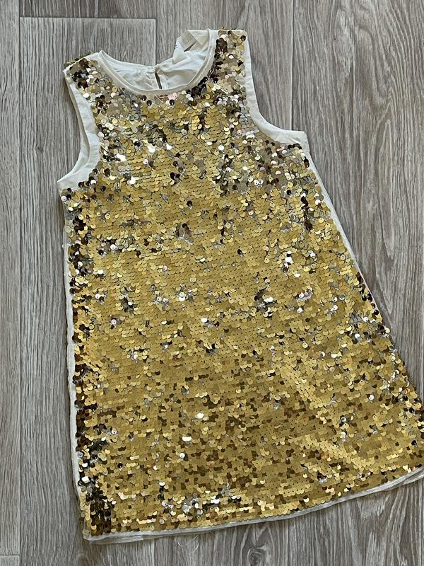 Платье в пайетки Цвет серебро/золото Состояние идеальное без дефектов 🏷H&M ♦️5-6 лет Длина 60. ПОГ 32 ♦️9-10 лет/140 Длина 70. ПОГ 38
