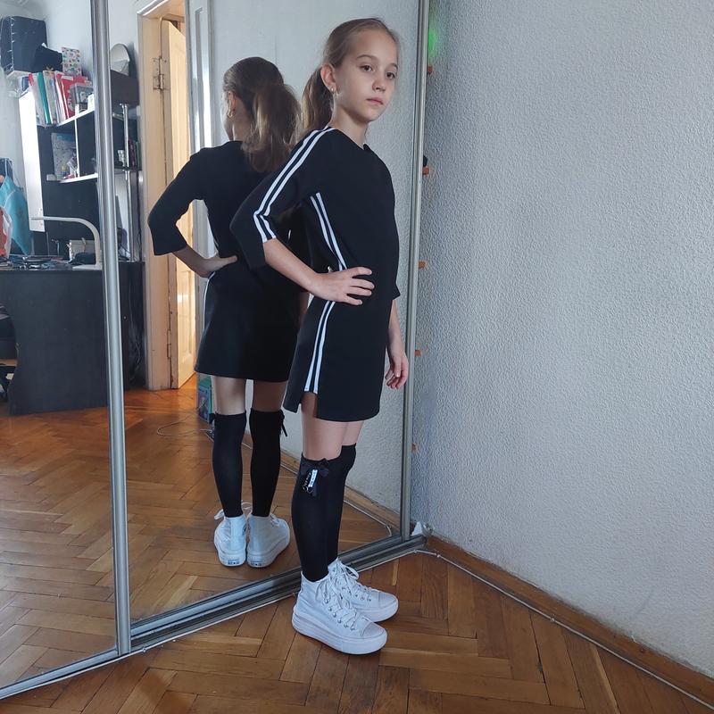 Плаття 134 см — 550 грн — чудовий стан, підійде на менший зріст (рукав буде дальнє) і на понад 140 см.Плаття можна носити в школу та для повсякденного життя.У складі 90% катон і лайка. Доповнить інформацію про тіло.********** г. Київ.