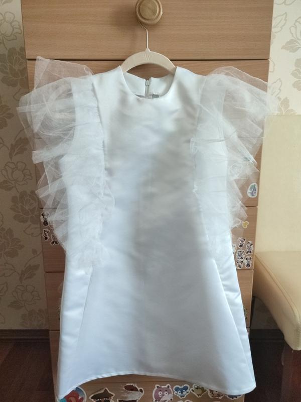 Белое платье, состояние новой вещи (надежно один раз) р. 140, длина 73.5 см, плечи 33 см, ПОГ 39. 5 см в поясе 38 см, низ 53,5 см