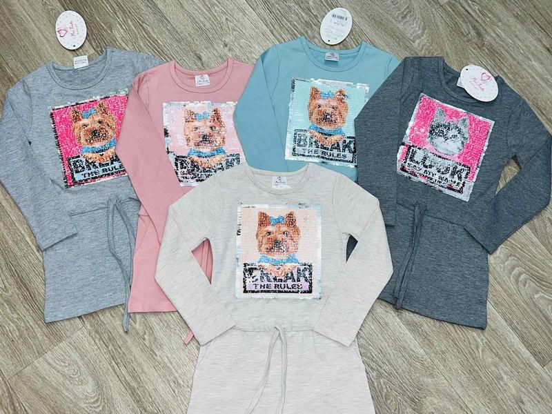 Круте плаття , якість супер. Виробництво Туреччина Украшена паєтками перевертишами з собаки перетворюються в кішку . Я наявності розміри від 3 до 8 років