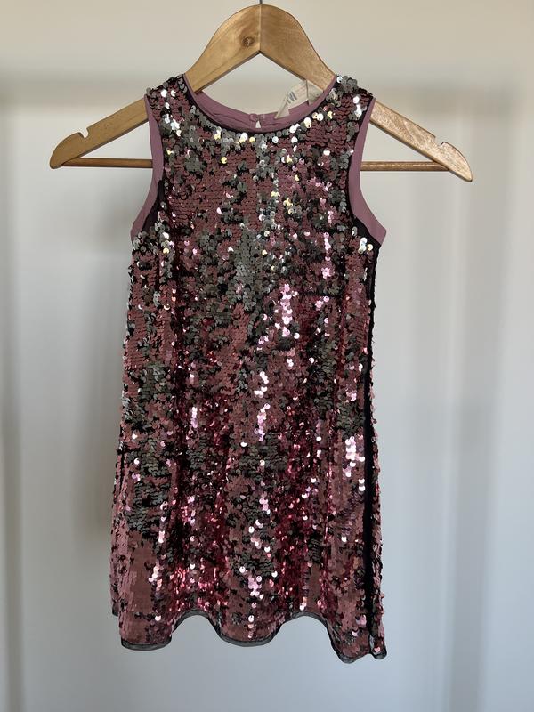 Паєтки на сукні двосторонні, вони можуть переливатися рожевим або сріблястим кольором. Сукня святкова, без рукавів, з круглим вирізом та має підкладку для комфорту. 7Гарне та нарядне платтячко Знизу на підкладці Легеньке,зручне Стан ідеальний