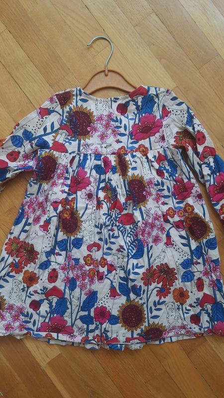 Новеньке плаття на дівчинку 2-3роки. Довжина по спинці до низу 50см, довжина рукава з плечем 38см, ширина під пахвами 31см.