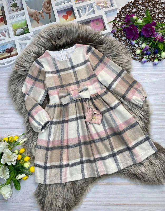 Тепле нарядне платтячко для красунь 💗 ззаду зав'язується на поясок, + застібається на блискавку, прикраса брелок тканина тепла кашемір ЗАМІРИ: довжина/пог/рукав від плеча 116 - 63/32/39 122 - 67/34/42 128 - 71/35/43