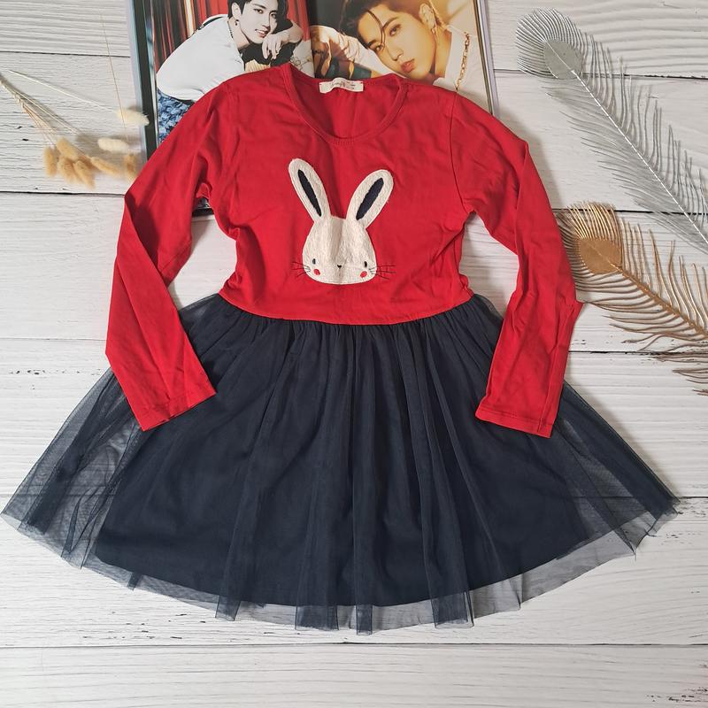 Плаття сукня для дівчинки в школу осінь весна з довгим рукавом фатін 6 7 років червоне син...