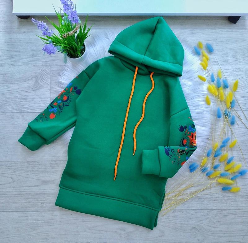 Мега популярная туника для девочек😍😍😍😍В стиле вышиванки 🤩🤩Теплая и комфортная💗💗💗 Лучший элемент гардероба на прохладное время года, ткань не покошлатится, качественные термо- наклейки, утепленный капюшон с канатиками 🌸🌸🌸🌸 С обеих сторон имеются действующие карманы 👍👍👍👍👍👍👍 Ткань: качественная трехнить на флис Производитель: Украина 🇺🇦 ЗАМІРИ ⤵ +/- 1-2см!!! р.110-длина от плеча 57 см/ПОГ 40 см/рукав от горловины 45 см р.116-длина от плеча 58 см/ПОГ 41 см/рукав от горловины 46 см
