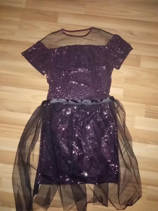 Сукня на дівчинку з паєтками і з'ємною спідницею сіточкою. Майже нова, одягали 2 рази Ідеально підійде для святкування Хеллоуїну, Дня народження або Нового року. Йде на зріст 164 Заміри довжина від плеча 82 см напівобхват грудей 40 см.