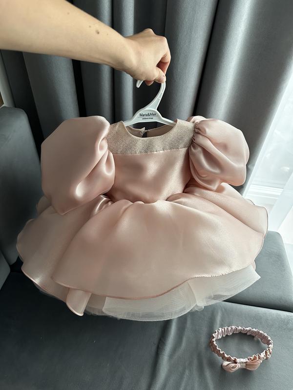 Неймовірна сукня в попелясто-рожевому кольорі від бренду Mariemax. Нова, в ідеальному стані. Розмір на рік-півтора. В комплекті ще повʼязка на голову.