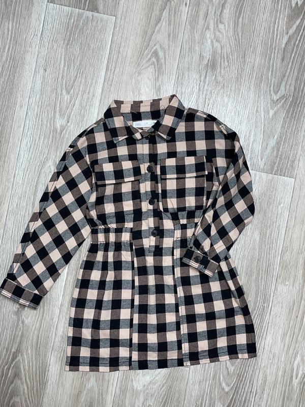Картата плаття Нагрудні кишені Застібається на ґудзики 🏷️Zara 7 лет/122 Довжина 63 (28). Пог 35. Рукав від шиї 51