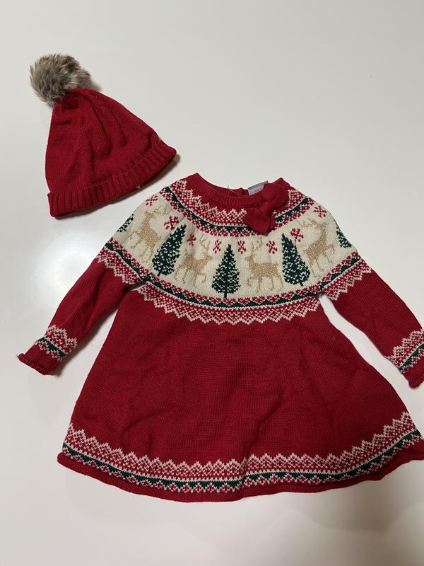 вязаное платье новогоднее детское. 0-3мес. Но яинарячала на 4 мес. Трещи увеличена. Одета была всего 1 раз!