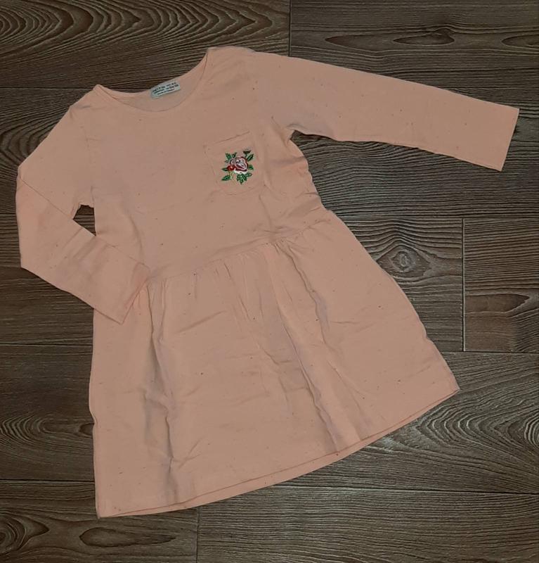 Сукня з вишивкою на кармані. Тканина трикотаж. Туреччина. Розмір 5-6 років Колір пудра Заміри Довжина 58 см, напівобхват грудей 29 см, плечі 24 см, довжина рукава 37 см