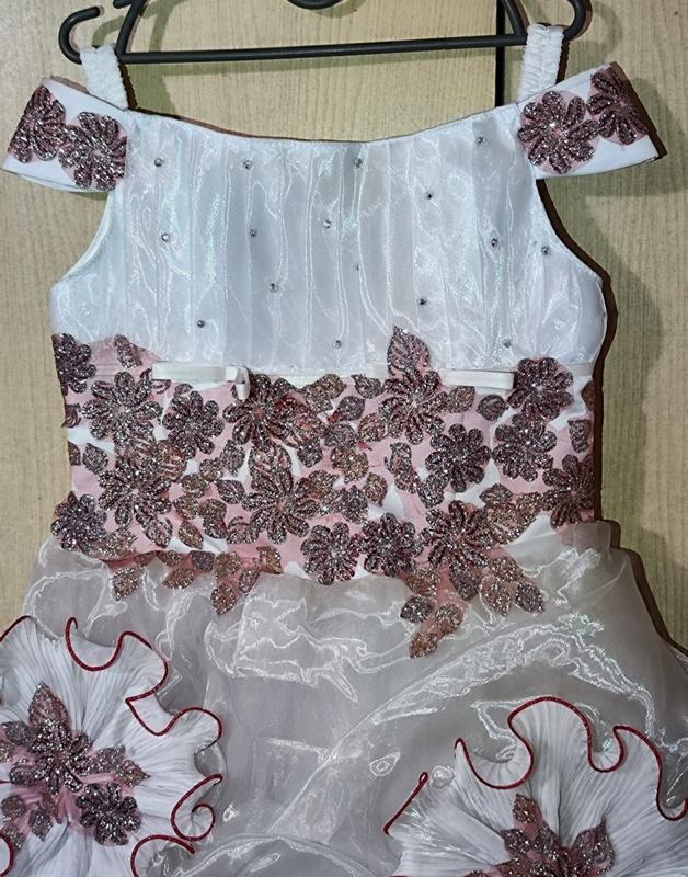 Параметри: довжина сукні від верхньої точки до нижньої 88 см, ПОГ 34 см, ПОТ 43 см. Виглядає дорого і багато☺️ чудово прикрасить вашу доньку на новий рік або на будь-яке інше свято Дефектів немає, єдине потрібно буде його випрати, у шафі трохи запилялося. У зв'язку з переїздом не було часу його випрати Дивіться мої інші оголошення за приємними цінами ❤️