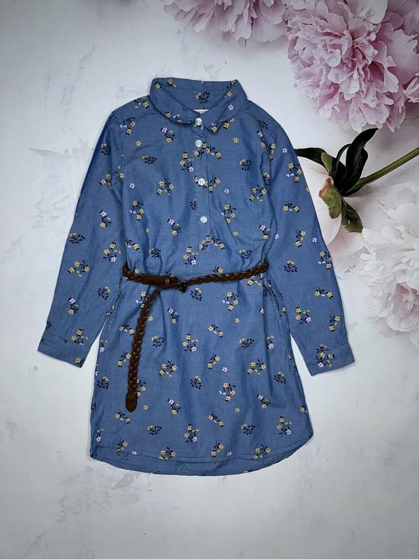 Котонове плаття з квітковим візерунком. ▫️Застібка спереду на ґудзики ▫️ремінь плетінка ▫️регульований рукав ▫️2 кишені з боків 🏷H&M 🔹5-6 років Довжина 59/62. ПОГ 34. Рукав 39.